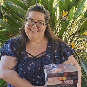 Emily Renk Hawthorne is a fantasy author that does an excellent job in combining mythologies with magic to create an immersive story. Of Mountains and Seas is her debut novel and not only has it received amazing reviews, but it refreshes the genre by using inspirations that other authors don’t use. Emily was our author for the month of October 2025.